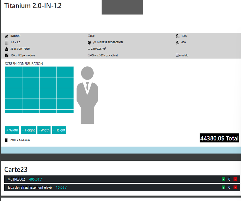 Deviseur d'écran led pour la société Artixum (69 lyon) avec gestion entité commercial, client, spécificité métier lié aux écrans leds.